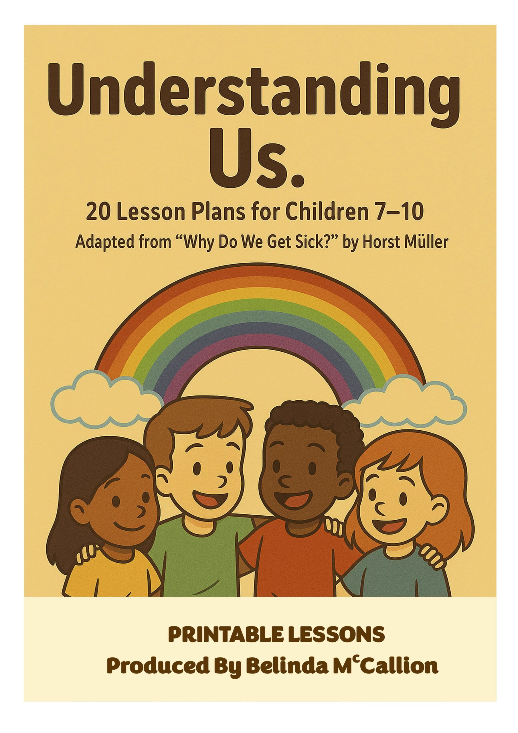 Understanding Us is a 20-part lesson plan for children, which is intended to follow the outline of Dr. Horst Muller’s Book, Why Do We Get Sick. The lesson plans are intended to be for children 7-10 years of age, but will be suitable for children younger than that. It is a PDF, which you can download and print for yourself or your children, or use on a device.